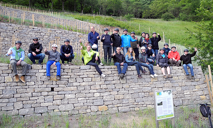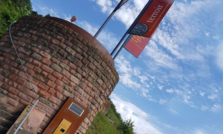 Hoch über Volkach, wo die Reben der großen Lage Escherndorfer Lump gedeihen, dreht sich dieser Standort von terroir f um das Thema Klima und Klimawandel – schließlich ist der Escherndorfer Lump eine der heißesten Lagen in Franken. Auf den Stufen, die von den Reben hinauf zum Aussichtspunkt führen, prangen Zitate zur Erntemenge und zur Qualität von außergewöhnlichen Weinjahrgängen bis zurück ins Mittelalter. Genießen Sie tolle Ausblicke auf die Weinberge, den Altmain und die Winzergemeinden. In Escherndorf setzen wir mit der Fähre über nach Nordheim und fahren den Panorama-Aussichtspunkt auf der Weininsel an. An der Hallburg vorbei und entlang des Main-Kanals geht es zurück zum Ausgangspunkt.