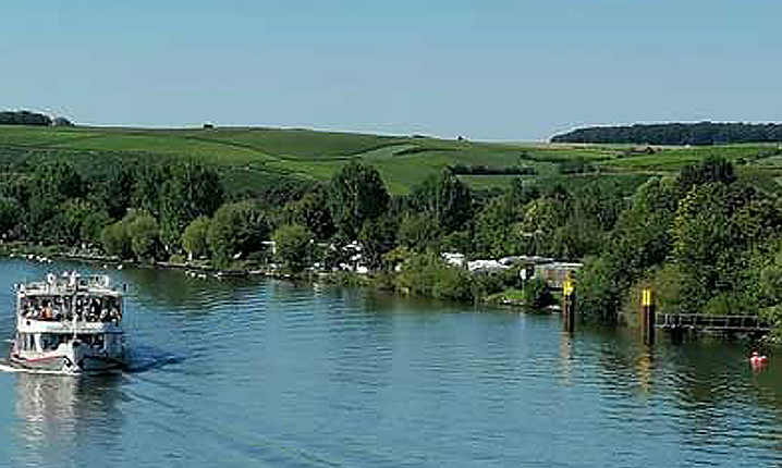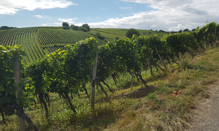 Hoch über Volkach, wo die Reben der großen Lage Escherndorfer Lump gedeihen, dreht sich dieser Standort von terroir f um das Thema Klima und Klimawandel – schließlich ist der Escherndorfer Lump eine der heißesten Lagen in Franken. Auf den Stufen, die von den Reben hinauf zum Aussichtspunkt führen, prangen Zitate zur Erntemenge und zur Qualität von außergewöhnlichen Weinjahrgängen bis zurück ins Mittelalter. Genießen Sie tolle Ausblicke auf die Weinberge, den Altmain und die Winzergemeinden. In Escherndorf setzen wir mit der Fähre über nach Nordheim und fahren den Panorama-Aussichtspunkt auf der Weininsel an. An der Hallburg vorbei und entlang des Main-Kanals geht es zurück zum Ausgangspunkt.